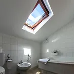 O design interior inclui sofá e mesa de trabalho e TV e TV de tela plana com canais via satélite. O quarto inclui bidé, banheira e chuveiro, secador de cabelo e lençóis de banho.